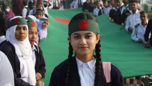 রাজধানীর মিরপুর থেকে আট বছরের ঐশ্বর্য আর আড়াই বছরের ঐশ্বরী সাভারে জাতীয় স্মৃতিসৌধে এসেছে মা-বাবার সঙ্গে। দুজনই বাংলাদেশের পতাকা আঁকা পোশাক পরেছে, হাতেও জাতীয় পতাকা। মা-বাবার পরনেও লাল-সবুজের পোশাক। স্মৃতিসৌধে ফুল দিয়ে শ্রদ্ধা জানানোর পরে ছবি তুলছিল পরিবারটি।